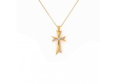 18K Gold Beautiful Cross Pendant Set with High Quality CZ & Chain Included