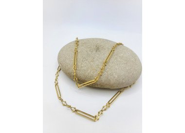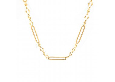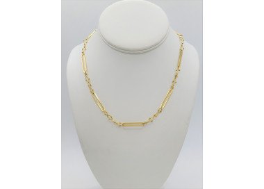 Original 14K Gold Rhombus Shape with Paperclip and Diamond Cut Balls Detail Necklace. Lobster Clasp