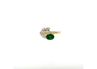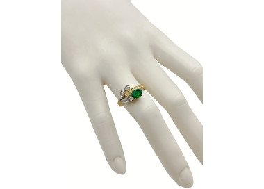 Amazing 18K Two Tone Gold Emerald & Diamond Ring