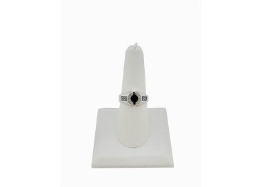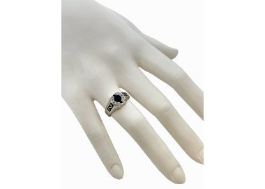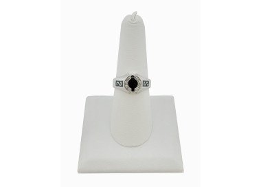 Amazing 18K White Gold Onix, Enamel & CZ Ring